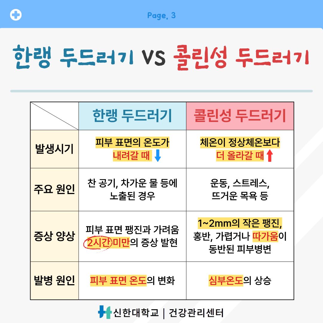[건강관리센터] 건강정보 카드뉴스-"온도변화로 나타나는 한랭·콜린성 두드러기"